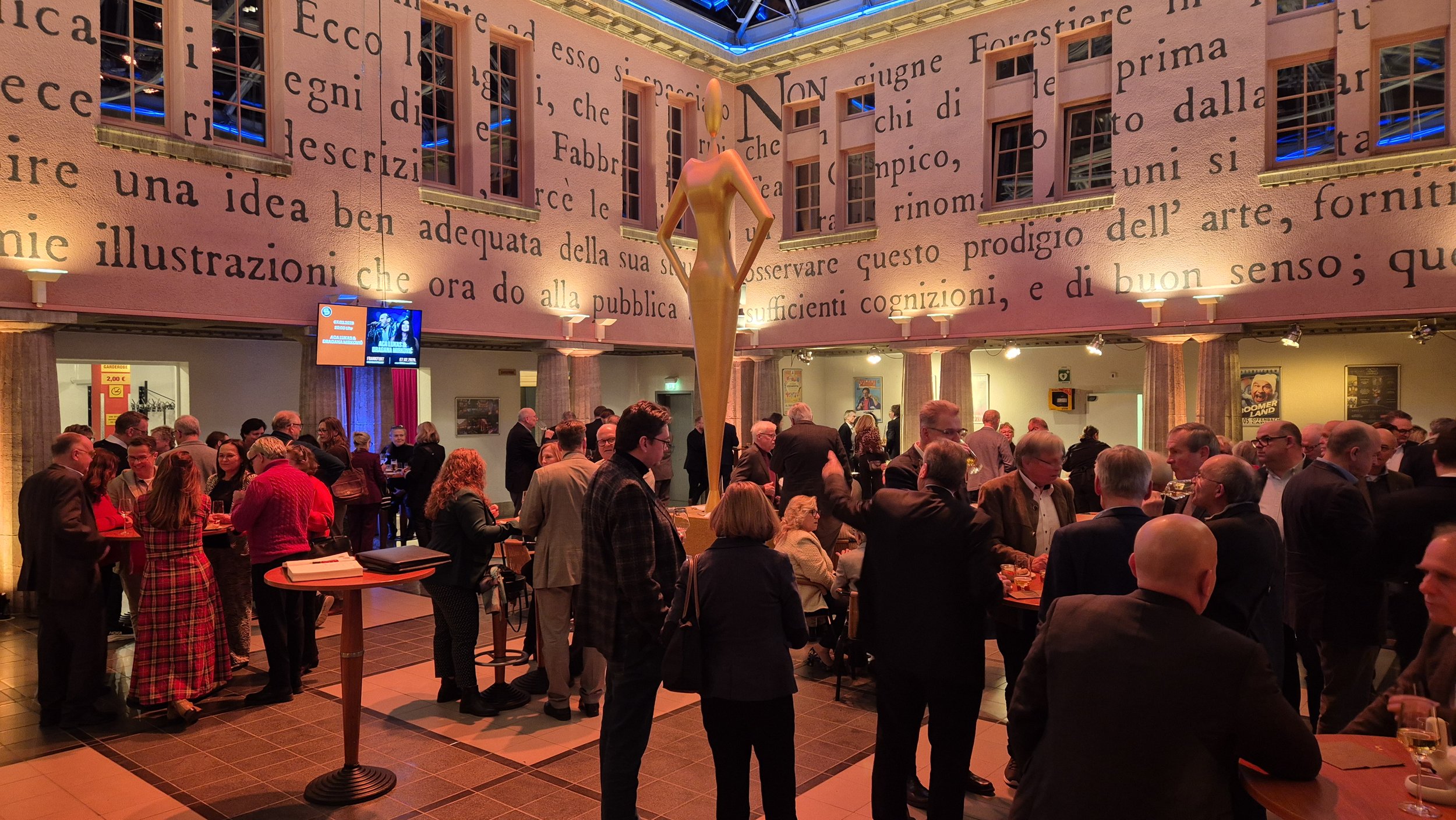 Am Abend kamen rund 300 geladene Gäste, um mit dem Team den 25. Geburtstag der einzigartigen Eventlocation zu feiern. Sie erlebten, was in dem Haus alles möglich (und sonst „nur“ bei Firmenevents zu erleben) ist. Im Atrium gibt es einen stimmungsvollen Steh-Empfang mit Sekt und Stelzenläufern. Im großen Saal spielt eine Kammer-Version des Capitol Symphonie-Orchesters (CSO) Stücke von Klassik bis Led Zeppelin. Dazwischen sorgt die Band 4 to the bar für entspannte Lounge-Musik. In ihrem Grußwort würdigt Bürgermeisterin Sabine Groß die Bedeutung des Capitol Theaters: „Mit seiner prunkvollen Ausstrahlung, die im Rhein-Main-Gebiet ansonsten nur im Kurhaus Wiesbaden zu finden ist, zahlt das Haus auf das Image unserer Stadt ein.“ Die Stadt könne sich ein solches Theater nur leisten, weil das kleine Team vor Ort – das zugleich die Stadthalle Offenbach betreut – so schlagkräftig und hochmotiviert sei, betonte Groß.